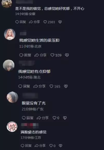 网友纷纷表示,看了王艳的视频,感觉特别压抑,好像快抑郁了的样子。也有人觉得,王艳满脸疲惫,似乎眼里已经没了光。