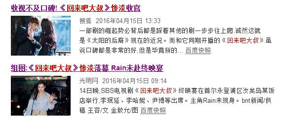 说起来,rain欧巴自从因为《浪漫满屋》这部剧红遍大江南北,很少可以出现和他匹敌的明星。可是,世事如此难料,友谊的小船说翻就翻,剧迷的爱心说变就变。自从《太阳的后裔》播出以来,《回来吧大叔》收视惨淡。
