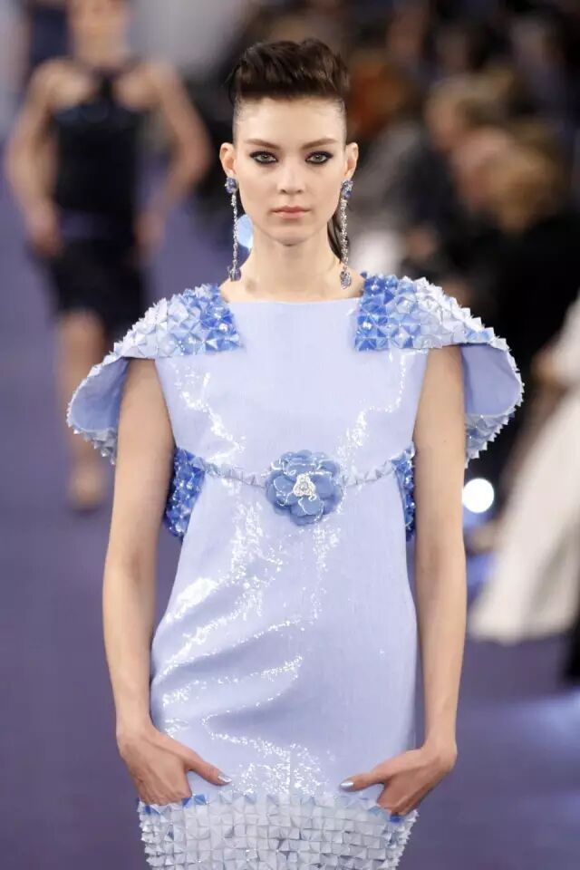2012年Chanel的高级定制系列,以蓝色为主旋律,灵感就来自于Choupette湖水般的蓝眼睛。