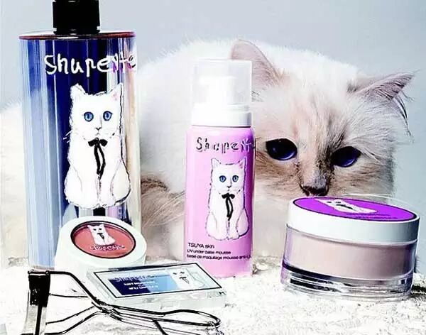 Karl与植村秀进行过多次的品牌合作,其中最受欢迎的就是以Choupette为主角的彩妆了~