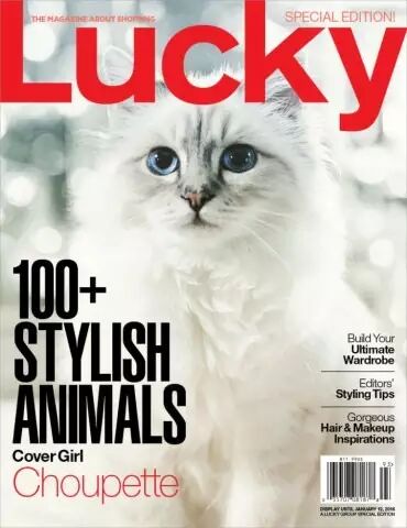之前介绍过的Eva Chen主编的《Lucky》杂志,也曾聘请她为封面女猫。