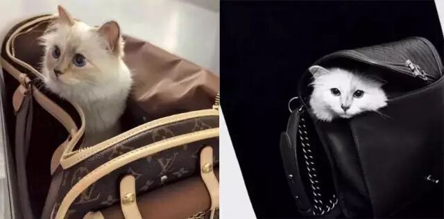 名牌的宠物包比比皆是,在LV和Chanel里,她跟着老佛爷乘坐私人飞机环游世界,不过大部分时候她会呆在卡尔的怀里或者趴在卡尔的肩膀。