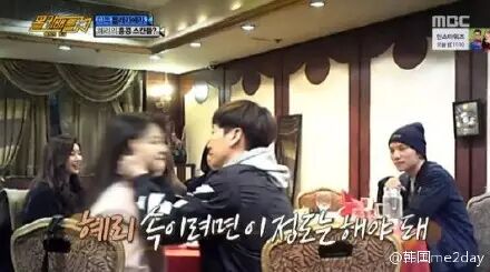 在今晚播出的“隐藏相机大战”节目中,为了完美骗到惠利,设置了两人恋情被拍,明天可能就被曝的状况,还当场Kiss,令惠利大吃一惊。另:在隔壁观察的卢宏哲看到利特,敏雅的Kiss直呼:“这到底是为谁(利特)做的隐藏相机”。