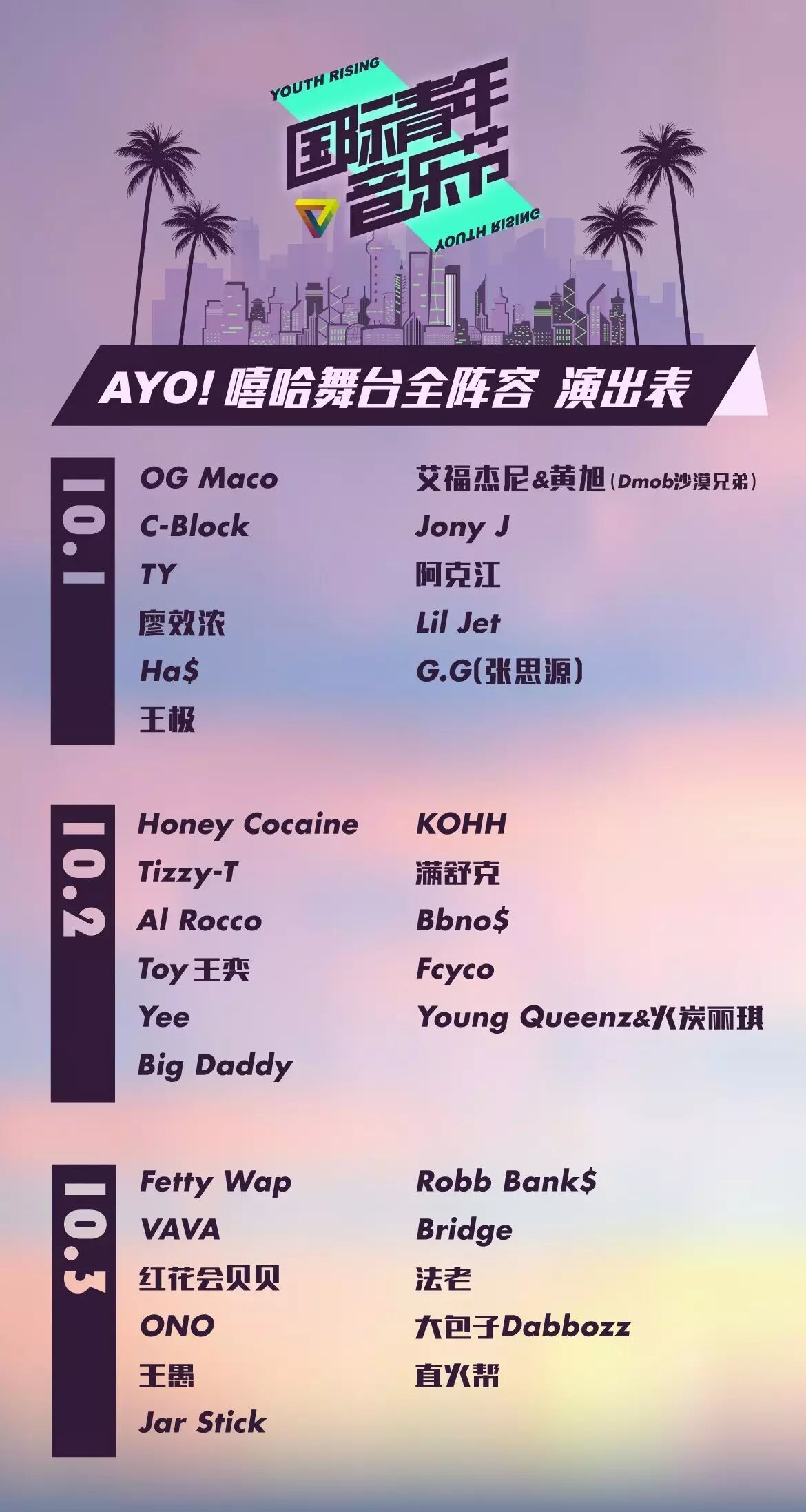 点击查看: # 上海国际青年音乐节AYO!嘻哈阵容 #