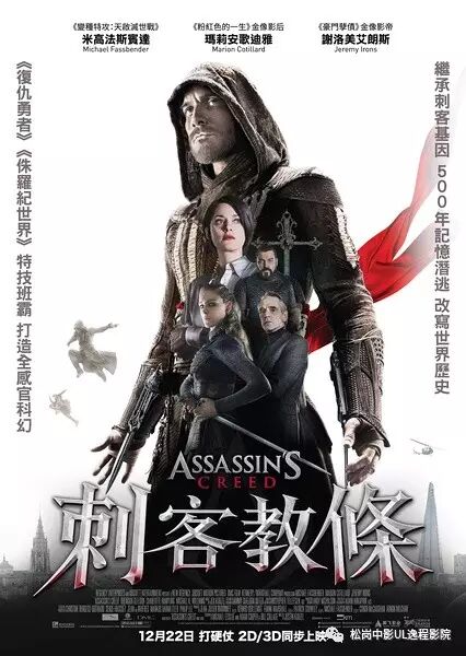 《刺客信条》电影是由育碧最畅销的电子游戏《刺客信条》系列作品改编,卡勒姆·林奇Callum Lynch(迈克尔·法斯宾德Michael Fassbenderr饰演)通过基因记忆得知自己是一名刺客的后裔,基因记忆技术让他能够体验到自己15世纪西班牙先祖阿圭拉Aguilar(迈克尔·法斯宾德Michael Fassbenderr饰演)的记忆。在获得超凡的知识和技巧后,他准备在现代对抗敌对的圣殿骑士组织。