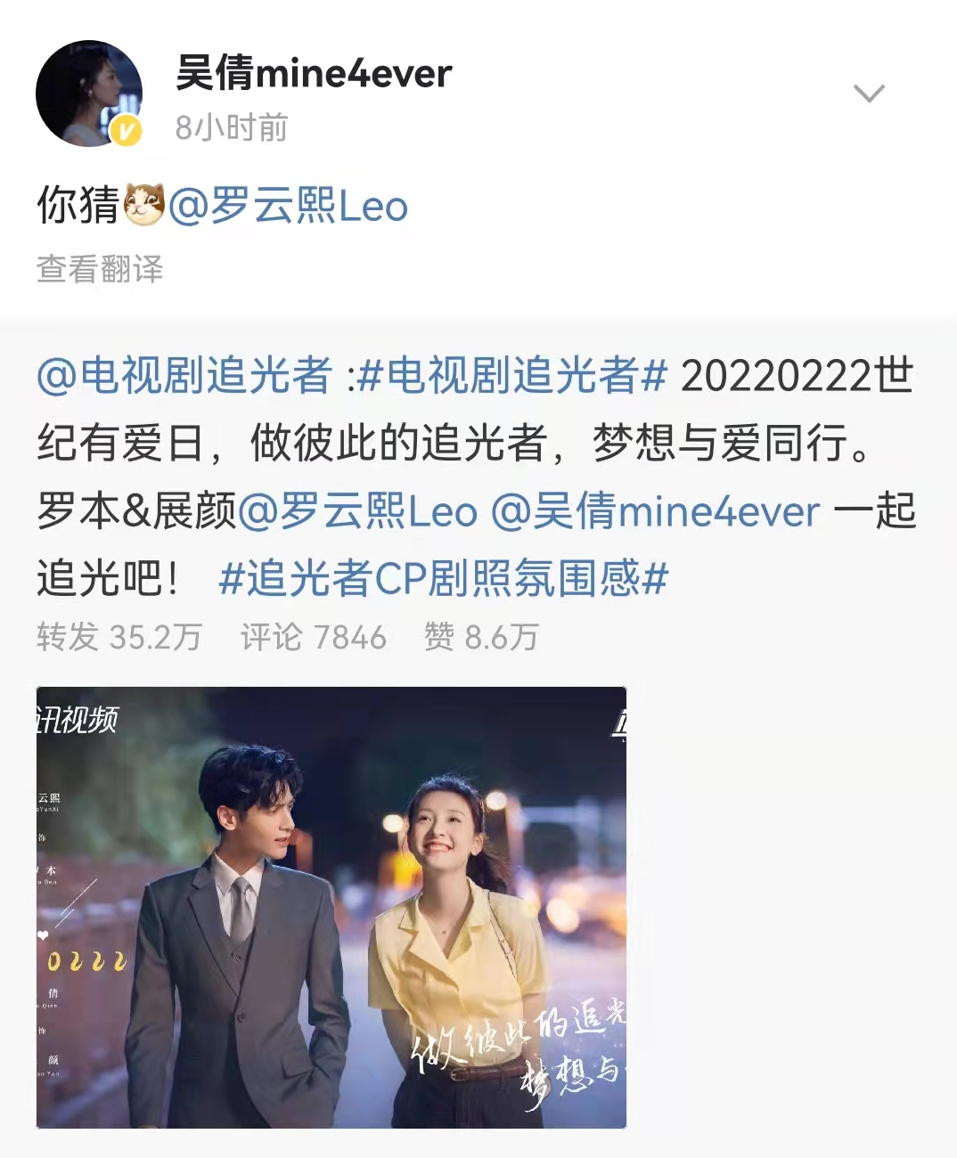 吴倩,干得漂亮! 周冲的影像声色 内地女星 2022-02-27 20:31:01 767 创作不易,用心坚持,欢迎请BaGua喝几杯爱心咖啡!打赏并支持本文 打赏并删除本文 爱情本来并不复杂,来来去去不过三个字,不是我爱你,我恨你,便是算了吧,你好吗,对不起。——张爱玲绝了。 太绝了。 小说照进现实,说的就是他俩吧。 2月22日,吴倩转发了一条新剧相关的微博,并@了合作的男主罗云熙。 瞬间引爆评论区。 “哦莫,秒回何以笙箫默!” “谁不是呢,DNA动了!” “我也喜欢他们,想起了自己的青春!” 确实,罗云熙和吴倩两人的搭档早已深入人心。 算上这次,他们已是三搭。 第一次,是小何以琛和小赵默笙。 他青涩。她灵动。 只是站在一起,就能让人姨母笑。 第二次,是电视剧《上古情歌》。 一个温文尔雅。一个落落大方。 这次,他们是真正的夫妻。 第三次,便是这尚未开播的《追光者》。 他更加成熟。 而她,笑容依旧那般明媚。 绝,就绝在这里。 戏里,小何以琛和小赵默笙缺席了七年后的戏份。 戏外,两人的合作从第一次到第三次,正好间隔了七年。 七年后的小何以琛,成了一名大律师。 七年后的罗云熙,在第三次合作里,演的也是一名律师。 七年后的小赵默笙,有一段离婚的经历。 七年后的吴倩,也刚好结束了一段不幸的婚姻。 巧合之多,真不怪大家激动。 但其实,网友高兴的理由,远不止这一点。 七年来,两人都经历了很多。 罗云熙从“小何以琛”到“润玉”,一步一步,稳步上升。 吴倩也从当年的灵气少女,变成了今日的单身母亲。 她迷惘过。跌倒过。受伤过。 但现在,她回来了。 笑容依旧灿烂。 只是眼神里,多了些故事。 ——从天堂跌落地狱,再从地狱重返人间的故事。 吴倩的星途,开场很顺。 18岁,就读武大艺术系。 20岁,担任饶雪漫的书模。 21岁,签约经纪公司华策,开始接戏。 一步接一步。一环接一环。 没有差错。 原因,自然是她的脸。 毫无疑问,早期的吴倩是灵气挂。 脸蛋圆圆。笑容甜甜。 扎个马尾,少女感尽显。 哪怕演技带点稚嫩,观众也完全不会感到违和。 比如让她一夜成名的“少年赵默笙”一角。 她厚脸皮。倒追男神。 可,男神何以琛是座难以融化的冰山。 哪怕被当面表白,也能无情拒绝:“我不准备在大学找女朋友。” 表白被拒? 没什么大不了的! 只见吴倩扬起小脸,歪了歪头,脸上笑容依旧:“那我就先排队!是不是等你大学毕业以后,就有优先录取权呀。” 灵动。自然。毫无做作。 这年,吴倩23岁。 娱乐公司看到了她无尽的潜力,开始倾注资源。 比如电视剧《我的奇妙男友》。 吴倩担任女主。 人设是当时很有市场的疯癫女明星。 再比如电视剧《择天记》。 她搭档鹿晗。 虽然不是女主,但可爱开朗的角色人设,依旧吸粉无数。 除此之外,华策还陆陆续续给了其他好资源、好角色。 曾有一段时间,吴倩获得了一个外号——“华策小公主”。 不过,外号归外号。 吴倩本人,可以说是毫无野心。 她没有淘宝。也没有朋友圈。 整个人,佛系到了一定程度。 面对他人惊奇的目光,她也只是淡淡地解释一句:“每个人的生活方式和选择方式不一样。” 在人人都想博出位的娱乐圈,吴倩不争,不抢。 甚至大胆坦白,演戏不是因为喜欢。 而是因为它来钱快,能让自己生活得更自在。 显然,吴倩的事业心不强。 演戏就只是一份工作。 如果遇到了对的人,那么她也会毫无顾忌地走入婚姻,以小家为重。 后来的事,我们便都知道了。 吴倩果然言行一致。 当那个名为张雨剑的男人出现时,她沦陷了。 抛下事业。抛下粉丝。 然后,跌进了一个大坑。 两人的相识相恋,非常简单。 就是因戏生情。 初遇,在电视剧《盛唐幻夜》。 吴倩女主。张雨剑男二。 花絮里,他俩打打闹闹。 吴倩挺着腰板,念着剧中人的台词:“我又不是傻子,我没谈过恋爱不代表我是傻子!” 闻言,张雨剑来了句出戏的话:“你没谈过恋爱?” 他问完,在场的都笑了。 吴倩也笑了。 有点无奈。有点羞怯。 爱情,悄然降临。 再次合作,是电视剧《我只喜欢你》。 这次,吴倩依旧是女主。 而张雨剑,也终于当上了男主。 两人,是官配。 他们在剧中甜蜜。 热吻。 说虎狼之词。 最后,剧小火了。 张雨剑也从曾经的十八线,开始有了姓名。 还有两人的关系,也从戏中,走到了戏外。 可,没有公开。 人们只能从一些蛛丝马迹,猜测两人的恋情。 比如手挽手逛街。 比如同时现身机场。 当然,这个可以理解。 年轻人嘛,不一定走到最后。 为了事业,谨慎总是对的。 可后来,两人的进度直接来到了“吴倩产子”。 这下,总该说点什么了吧? 可,还是什么都没有! 甚至,张雨剑还大张旗鼓地卖单身人设:“我也想找女朋友。” 大概是入戏太深,“单身”的张雨剑还做了许多,容易让人误会的举动。 比如,和当时刚红的虞书欣宣传新剧时,一遍又一遍地告诉观众: “我以前对她特别不好,然后经常不回她的短信。”“不要像我以前那样,发短信不回……” 这若有若无的提示,直接把虞书欣给惹急了。 她赶紧大喊道:“我哪有,你不要讲得我一直给你发短信的样子!” 此时,他和吴倩的关系,早已是大家心照不宣的秘密。 粉丝们见此当然愤怒。 “把吴倩当隐形人?” “一边和吴倩在一起,一边操单身人设玩暧昧?你算什么男人。” 而他引起众怒的,还在后头。 去年三月,吴倩带娃出门被拍。 舆论再次被点燃。 张雨剑终于不装死,出来说话了