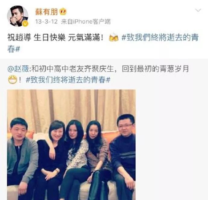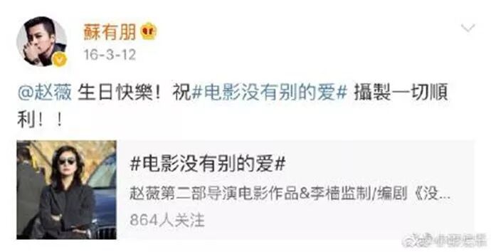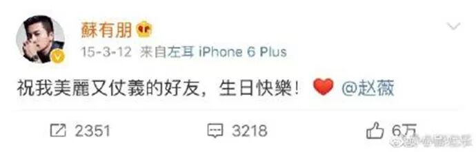 3月12日是赵薇42岁的生日,好友苏有朋专门在微博上为其送上生日祝福,并配文:“老赵,生日快乐!”尝尽世态炎凉后,或许更能体会到苏有朋这份友情的真实与珍贵。不管任何时候,不管别人对你的态度如何,苏有朋永远是你的朋友,即使是一声淡淡的问候也是暖心的。
