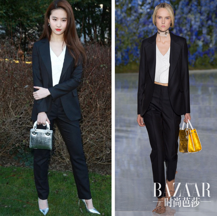 在巴黎时装周上,刘亦菲一身黑色西服套装穿起来有一种霸道女总裁的即视感!