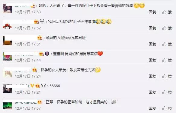 张歆艺这条完全放下偶像包袱的孕期写照,简直是太可爱了,网友都没有嫌弃吃得满肚子食物残渣的二姐,孕妈妈们也表示,“太形象了,每一件衣服肚子上都会有一些食物的残渣”,“孕妈的衣服前总是容易脏”,二姐真算是见过怀孕时最真实的明星了。