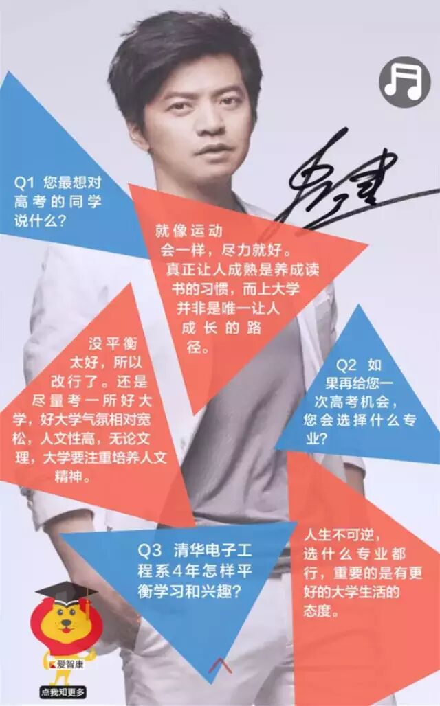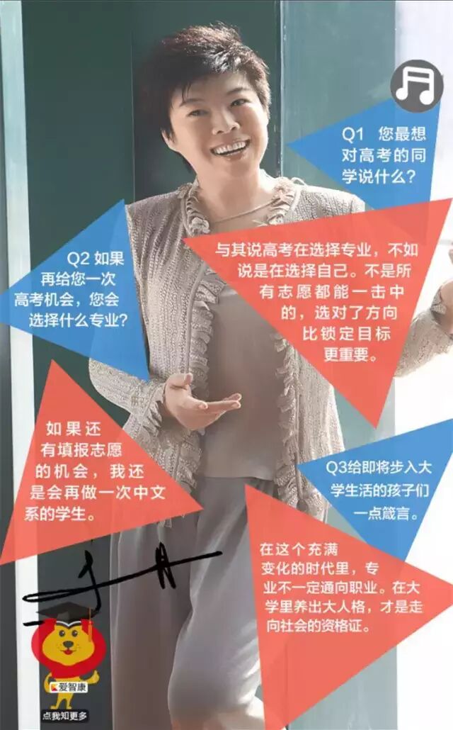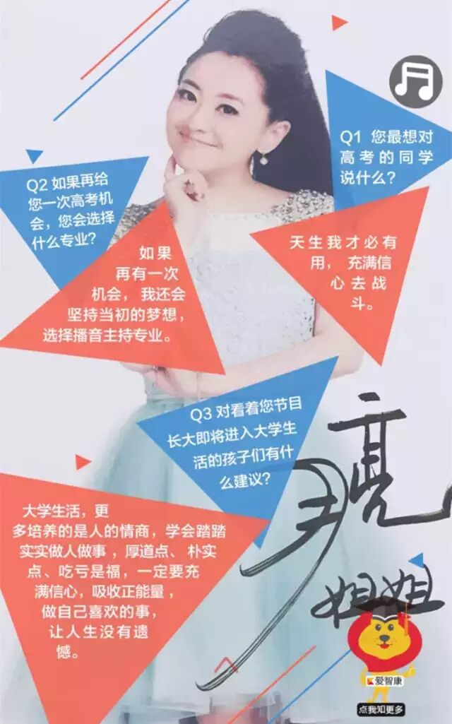 点击原文阅读,和“诗人歌手”李健、“电音女王”尚雯婕、“鸡汤教主”于丹、“军旅之花”殷桃一起给高考生和你自己加油!