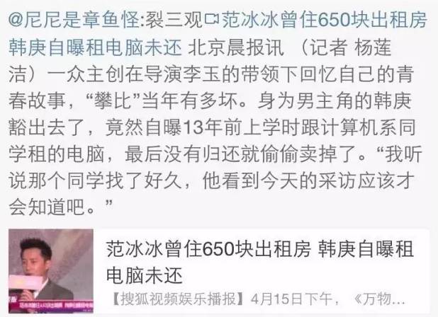 伴娘事件!柳岩道歉,包贝尔后道歉,韩庚被爆黑料道歉....... 内地男星 2016-04-21 06:59:01 677 创作不易,用心坚持,欢迎请BaGua喝几杯爱心咖啡!打赏并支持本文 打赏并删除本文 提示:点击↑上方"蓝字"免费关注!每天更新!脱口秀因为喜欢 所以选择分享包贝尔婚礼上的伴娘事件这几天一直在上热搜,小编也做过一期。这样的事情曝出来,按理说应该是新郎和伴郎道歉,让人没想到的是柳岩先站出来了。柳岩先是对没有及时澄清向包贝尔夫妇道歉,然后说了自己的感受,一大批网友表示心疼!几个小时后,包贝尔顶不住压力,发表了致歉...大部分网友对此不买账,本来嘛,老老实实说我错了开玩笑开过头了,给柳岩和社会带来的消极影响表示歉意就行了,还解释一大堆,这道歉一看就不诚心。。。广州海关跳出来,说:这个锅海关不背,给这么有趣的官方点zan!就在大家都质疑包贝尔撒谎的时候,婚礼团队晒出证据。还是被网友喷了伴郎的表现呢?我们来看看杜海涛发“骂人”后秒删。有人猜测是举报不小心发错了。。。以前下跪权志龙的黑历史也被挖出来狂骂。媒体报道李灿森是伴郎团里第一个出来道歉的,他没有参与游戏,小编本来是去点ZAN的,结果那条道歉的被删了,还加了几条还有这个,他的情商我也是没sei了被网友狂喷最后说说韩庚,4月1号居然还在发自拍做广告。。。然后被各种扒黑历史----我是韩庚黑料的分界线----小编不是故意黑,只是把最近娱乐圈的那点事整理给大家看看【黑料之一:偷电脑 】之前,韩庚在宣传电影的时候,谈到自己青春期的时候特别坏。他在采访中说,曾在13年前租借了同学的电脑,同学没记得找他要,他就偷偷地将电脑卖掉了。额,你看到旁边范冰冰的尴尬了吗?在旁边的撒贝宁试图圆场,说韩庚这属于坦白自首,还是可贵的,而且13年前发生的事件已经过了追诉期。还假调侃真提醒地说:你们不要见到法制节目主持人就什么都说嘛!但是还是没有拦住啊!随后他还聊到自己没钱买磁带就去音像店里面偷,一个袖子里面放5盒,一次偷10盒。看到这里,竟然有粉丝觉得这就只是开玩笑而已!这真的是“真粉”啊!【黑料之二:骗同学喝尿】在做客郭德纲节目的时候韩庚自己说的 谁还没个年少的时候啊!【黑料之三:录节目罢录】2010年的时候,在深圳卫视的节目中中途罢录2012年,在《天天向上》中途罢录。 还好当时有wuli涵哥在!中间还有一次,应该就是他们都是特步代言人。所有的明星都发了祝福,到韩庚的时候,他突然....小编此刻特别懂旁边潘玮柏的心情!小编觉得,谁还没个过去呢?但是,很多时候,有的事情,不是那么的伟大,咱就低调点,可以不!顶不住舆论的狂轰滥炸,韩庚出来道歉了,连同以前的事...其实这个事就是尊重人的问题,尤其是对!大家知道什么是绅士手吗?娱乐圈里的绅士也是很多滴!来看看吧!---我是绅士的分界线---陈伟霆在开始接受采访的时候是这样说的,其实他在拍戏的时候也做到了!和男的合照的手则是完全放在肩上还有吴亦凡和刘亦菲一起合作还有就是张杰,想当初,这张背手照让多少人为之点zan李易峰霍建华鹿晗张艺兴,尽量不抓女生的手,而是抓了胳膊金秀贤李光洙易烊千玺和女性舞伴跳舞时的浮空手,小小年纪就知道避嫌。 还有吴磊,下车的时候帮蒋欣护头和“姑姑”陈妍希出席活动,他细心牵着姐姐的手,怕她摔跤,尽心为她保驾护航参加《快乐大本营》,他第一时间挡在娜姐身前有没有你喜欢的男神?有的话赶快抱走! 创作不易,用心坚持,欢迎请BaGua喝几杯爱心咖啡!打赏并支持本文 打赏并删除本文 感谢您的支持鼓励,我会继续努力的!文章地址:用户邮箱:打赏金额:USDT 请输入数字点击”去打赏“,即可进行打赏支持本文章哦 韩庚 发表评论