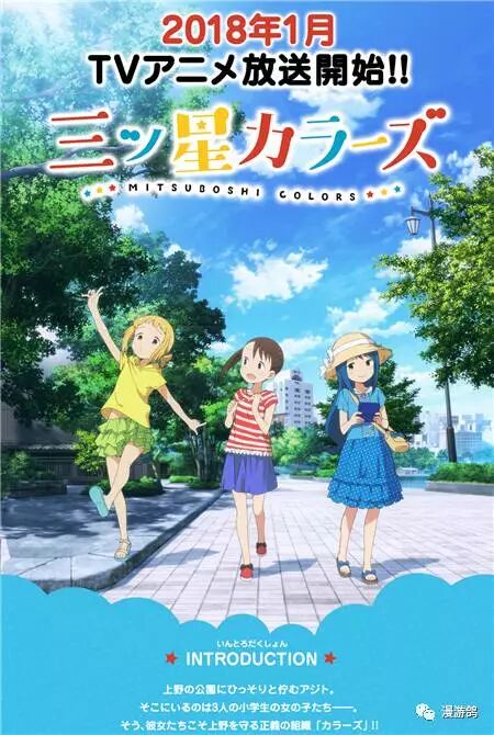 18、三星colors《三星colors》改编自カツヲ的同名漫画作品,由 SILVER LINK.负责动画制作。主要配音有高田忧希,高野麻里佳,日冈夏海。故事的舞台发生在东京上野阿美横丁。在这条街上有着三个十分元气的小学生结衣、幸酱、琴叶——这三位小学萝莉组成了一个维护上野和平的组织 Colors。三个小学萝莉号称是日夜守护着上野在街上奔走的正义组织,但其实到了晚上就各回各家了。