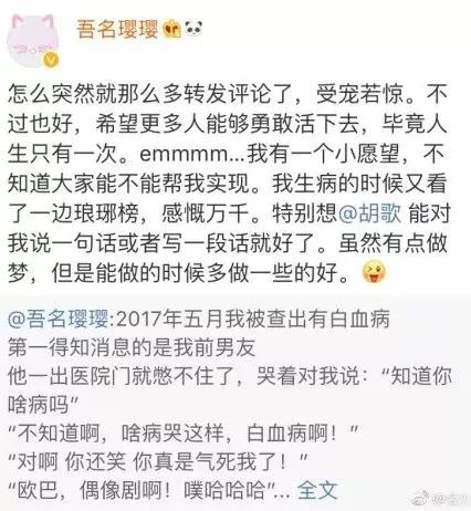 特别想@胡歌 能对我说一句话或者写一段话就好了。虽然有点做梦,但是能做的时候多做一些的好。”