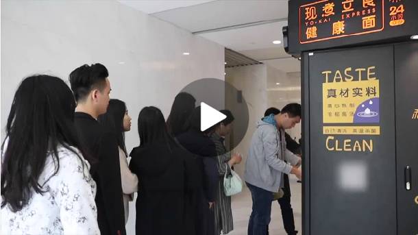 1、在上海徐汇区,出现了一个无人移动面馆。一到饭点就排起了长长的队,45秒钟就可以煮好一碗热气腾腾的面,方便又好吃。有两种口味,酸汤肥牛和豚骨。排队买面的顾客惊叹道:好神奇。食客吃完面条后评价:味道还可以,能打80分。