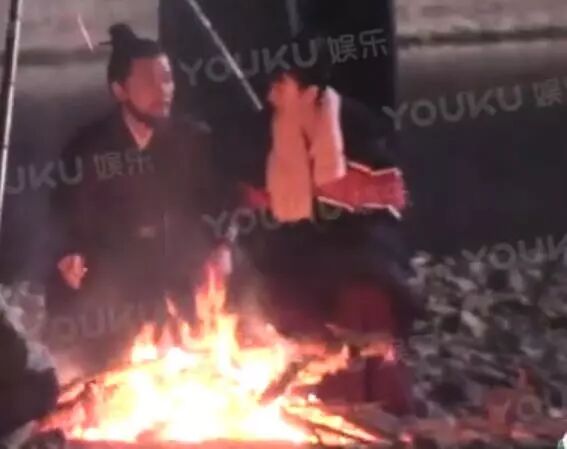 拍摄结束后赵丽颖没有去休息,而是挨着冯绍峰围着篝火坐下了。