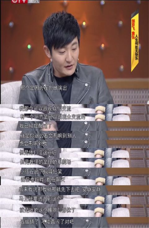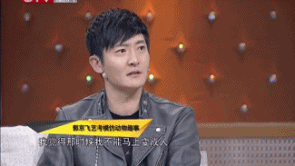 主考老师让他们现场模仿动物。郭京飞模仿一个豹子,结果在模仿豹子出气的时候,把鼻涕甩了一脸……