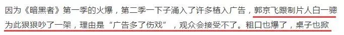 第一部爆火之后,自然而然第二季的经费就足够了,相对应的金主爸爸也多了。为了这事,郭京飞和导演吵过,因为“广告多了毁戏”。