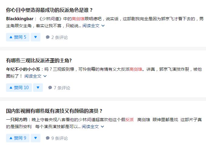 知乎上有问题是“塑造反派最成功的角色”“哪部剧对男主无感却爱男二”