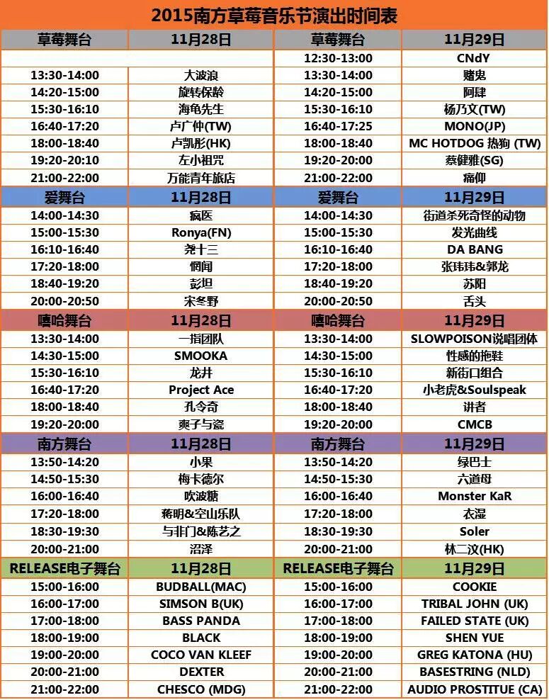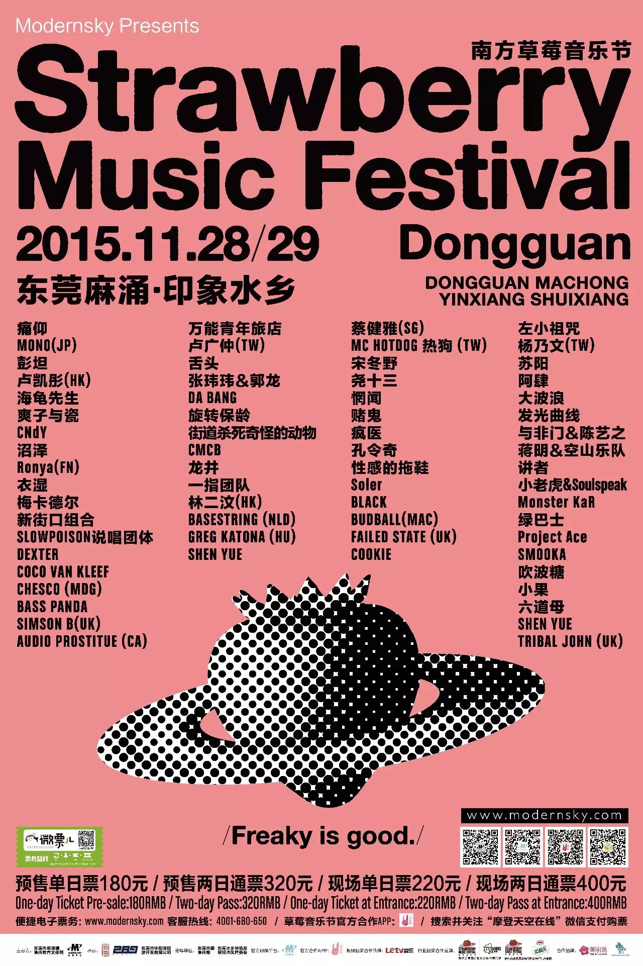11月28-29日—东莞麻涌“印象水乡”,2015南方草莓音乐节,Freaky is good!