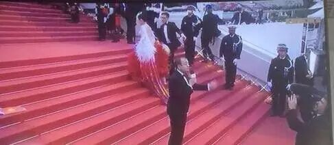 11日下午,剧组原定要走开幕阿式红毯,结果由于戛纳堵车,接送艺人的车辆迟到了,导致整个剧组都没能走上红毯。戛纳开幕期间,多个路段实行了交通封锁,又由于法国前不久发生恐袭,今年关卡检查格外严格,所以导致剧组无法按时赶到电影宫。据说《盗墓笔记》剧组唯一顺利走上红毯的是一名印度女演员。