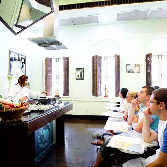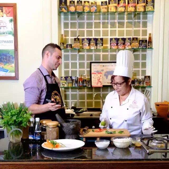 ➤ 蓝象烹饪课受到全球各地人士慕名而来学习泰国料理,课程由老师带领前往传统市场采购当日食材开始,进行教学授课示范,最后由学员亲自动手实操烹饪午餐(4道菜),烹饪课结束后于蓝象餐厅内品尝自己专业学习的烹调成果。