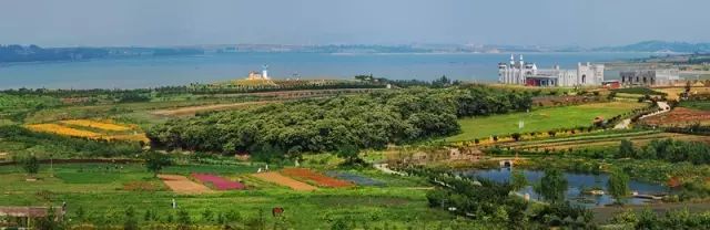 音乐湖—蒙古包—垂钓园—跑马场—木屋风车—湖畔沙滩,远处就是水库和山,各色的花儿伴你左右。