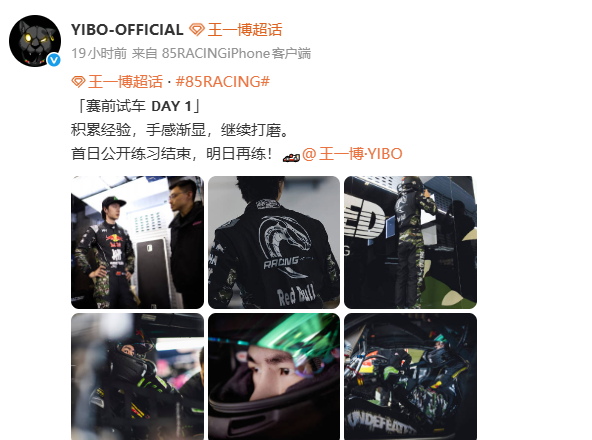 配文中写道:赛前试车 DAY1,积累经验,手感渐显,继续打磨。首日公开练习结束,明日再练!