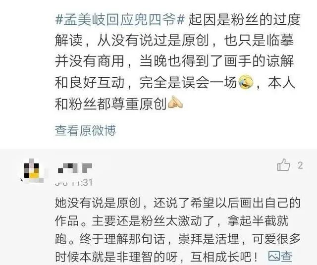 孟美岐晒画获赞艺术家,却被扒出是他人作品拼成的,文艺人设刚立就倒了? 电影特搜 内地女星 2020-03-09 20:55:37 749 创作不易,用心坚持,欢迎请BaGua喝几杯爱心咖啡!打赏并支持本文 打赏并删除本文 最近停工宅在家的明星们纷纷在网上展示自己闲暇时掌握的新技能,烟火气一点的譬如下厨啦、健康一点的譬如健身舞蹈瑜伽,文艺点的还会给粉丝分享自己最近在看哪些书,和自己画的画。近日,孟美岐在微博上宣布自己找到了新的兴趣爱好,爱上了画画,希望以后能画出自己心中的作品回馈给粉丝们。配图中孟美岐画的这幅画很有意境,配色看着也很舒适,作为新手能画出这种水平的作品确实很厉害了。粉丝们看到正主这么优秀自然开心,纷纷在评论里夸赞孟美岐有搞艺术的天分,玩梗称孟美岐为“达芬岐”。不过好景不长,第二天晚上就有名为兜四爷的博主发博,并艾特了孟美岐称:“咋这么眼熟,你把我这两幅画拼成一张了吗?”该博主还在配图里晒出了自己的原作,网友们经过对比发现孟美岐确实是抄袭了别人的作品,孟美岐“天才画家”的人设崩塌。一时间网络上多了很多指责孟美岐抄袭的声音,孟美岐的处境也变得尴尬了起来。粉丝们开始替孟美岐解释说:她只是一个初学者,只不过是看到好看的画之后出于喜欢才临摹的,而且从始至终都没有说过这是自己的原创作品。虽然孟美岐的大部分粉丝都是理智的,但难免也会有一些粉丝的想法比较极端。看到孟美岐被网友们指责抄袭后,孟美岐的一个粉丝发博称要临摹一定要临摹大师的画,暗讽兜四爷画画水平低。一石激起千层浪,个别粉丝的不当言行让关于孟美岐抄袭的话题继续发酵。也许是迫于舆论压力,孟美岐站出来解释说:“最近初学画画,还是新手一枚。偶然看到这两幅画特别喜欢,今天才知道是兜四爷的作品~加上了点不成熟的小创意,老师看看我表现得可还好?”孟美岐的解释获得了兜四爷的谅解,兜四爷还在评论里对孟美岐表示赞赏,鼓励她继续加油,随后删除了指责孟美岐抄袭的微博。事后孟美岐又特意发布了一个道歉微博,态度诚恳。至此,双方误会解释清楚,孟美岐抄袭事件算是画上了一个句号。不过神奇的是孟美岐这次的抄袭事件把和她毫无瓜葛的肖战也牵扯了进来。原来是借着这次孟美岐抄袭的东风,有网友扒出肖战之前在微博上分享的画作当中也有一幅是临摹的。肖战临摹了一位芬兰作家的太空图作品发出来和大家分享,不过和孟美岐不一样的是肖战在评论里标明了这幅作品是临摹的,并非原创。不过身为顶流,肖战的一举一动都会被网友们放大。最近肖战的路人缘因为“同人文事件”下降了很多,黑粉们就抓住肖战虽然声明了自己是临摹的,但并没有标明出处这一点对他进行攻击,判定他这一行为是违反著作权法的侵权行为。现实生活中很多人看到喜欢的画都会临摹,怎么到了明星这里就不行了,更何况肖战只是把作品拿出来和大家分享,并没有用作商业用途,没有盈利目的自然也就不存在侵权一说。也是人红是非多,这个事情之后,不少人落井下石。找出她以前的一些黑历史,说她强凹的人设又崩塌了。有人质疑说之前孟美岐上节目时为了突出自己的勤奋努力的人设,声称自己 “参加比赛的后两个月几乎每天要么不睡觉要么只睡半个小时”的言论不合现实逻辑,简直是医学史上的奇迹。还有人说她虽然现在立文艺画家人设但实际上是个文盲连“像”、“东西”、“魅力”等常用字都会写错。许多营销号曾经大量截取孟美岐片场拍摄打戏敬业时的片段,发布孟美岐“打戏都亲自上阵,不用替身”的宣传,结果不久就被扒出她和替身的同框图。不过既然孟美岐已经向原画作者郑重道歉,且认识到自己的错误了,还是不要过于苛责了吧,你们有什么看法呢? 创作不易,用心坚持,欢迎请BaGua喝几杯爱心咖啡!打赏并支持本文 打赏并删除本文 感谢您的支持鼓励,我会继续努力的!文章地址:用户邮箱:打赏金额:USDT 请输入数字点击”去打赏“,即可进行打赏支持本文章哦 孟美岐 About the Author 电影特搜 功能介绍:新浪微博@电影特搜, 影视评论人.这里有电影的一切,每天分享最新电影资讯和电影资源.各种娱乐明星八卦哈哈哈,欢迎来勾搭 Related Posts 刘嘉玲穿泳装露事业线,皮肤白到发光,身材丰满大秀美腿! 2023-06-06 19:30:28 王祖贤退圈后活成了这个模样,让人难以辨认! 2023-03-16 19:30:26 钟汉良去年已离婚?女方净身出户… 2023-03-12 20:06:23 陈思诚开豪车带小21岁女友约会,亲密搂抱依偎而行,女方素颜太惊艳! 2023-02-07 19:30:17 刘恺威怀孕?两人聚餐女方全程捂着肚子,男方贴心扶上车! 2023-01-15 19:30:55 发表评论