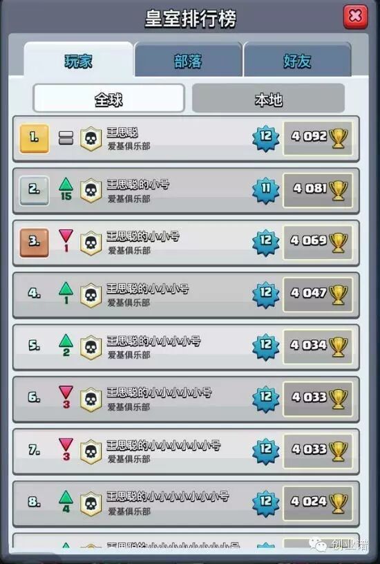 有钱任性的他,还壕掷100万,怒充10个小号,占领《皇室战争》排行榜前十。誓要带领的“爱基俱乐部”,争得全球第一俱乐部的位置。