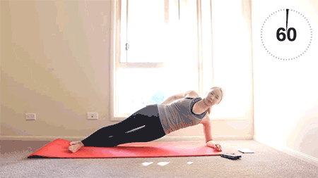 侧卧,双脚交叉放,下方的手臂屈手肘用小臂撑地,手肘在肩膀正下方位置。