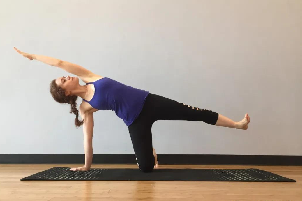 左右摇晃。单腿上抬时腹部没有收紧发力导致身体左摇右晃,髋部翻转。建议降低抬腿高度,腹部及臀部有酸痛感即可。