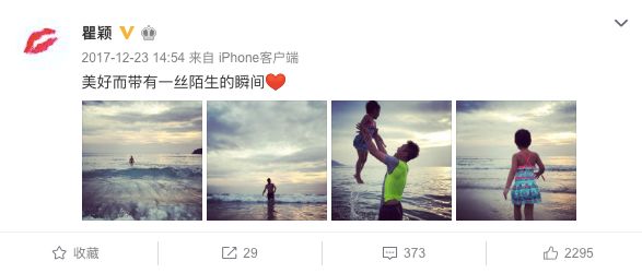 2017年12月,她大方地在微博上晒出现任男友和男友女儿的照片。