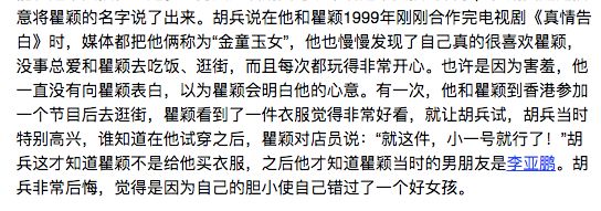谁知瞿颖转身就让店员拿一件小一码的包起来,胡兵这才知道原来衣服是买给她当时的男朋友李亚鹏的。