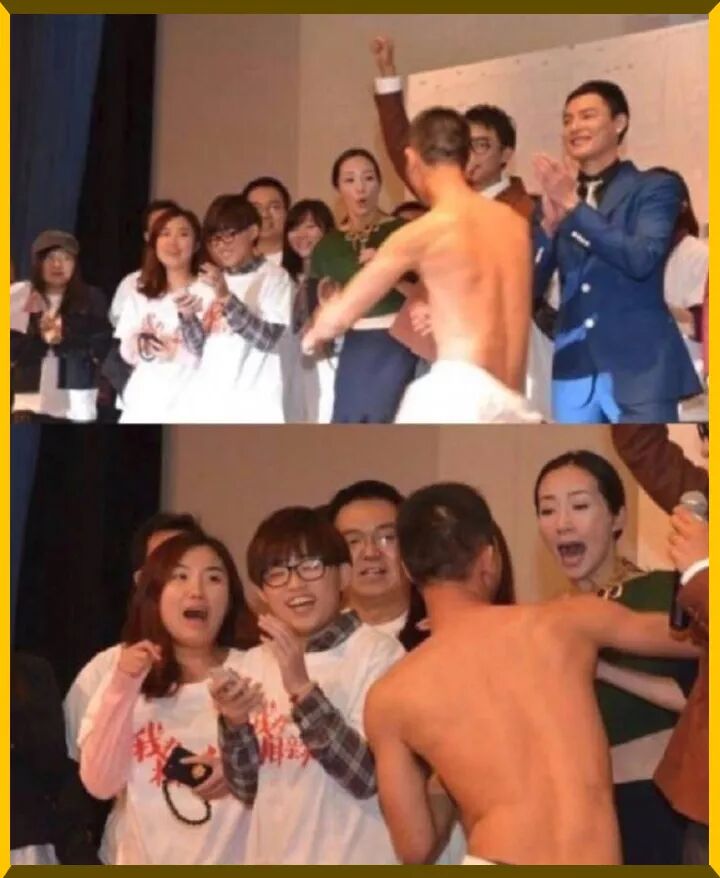 邓超在台上站得好好的,突然一个粉丝从台下蹿出来,