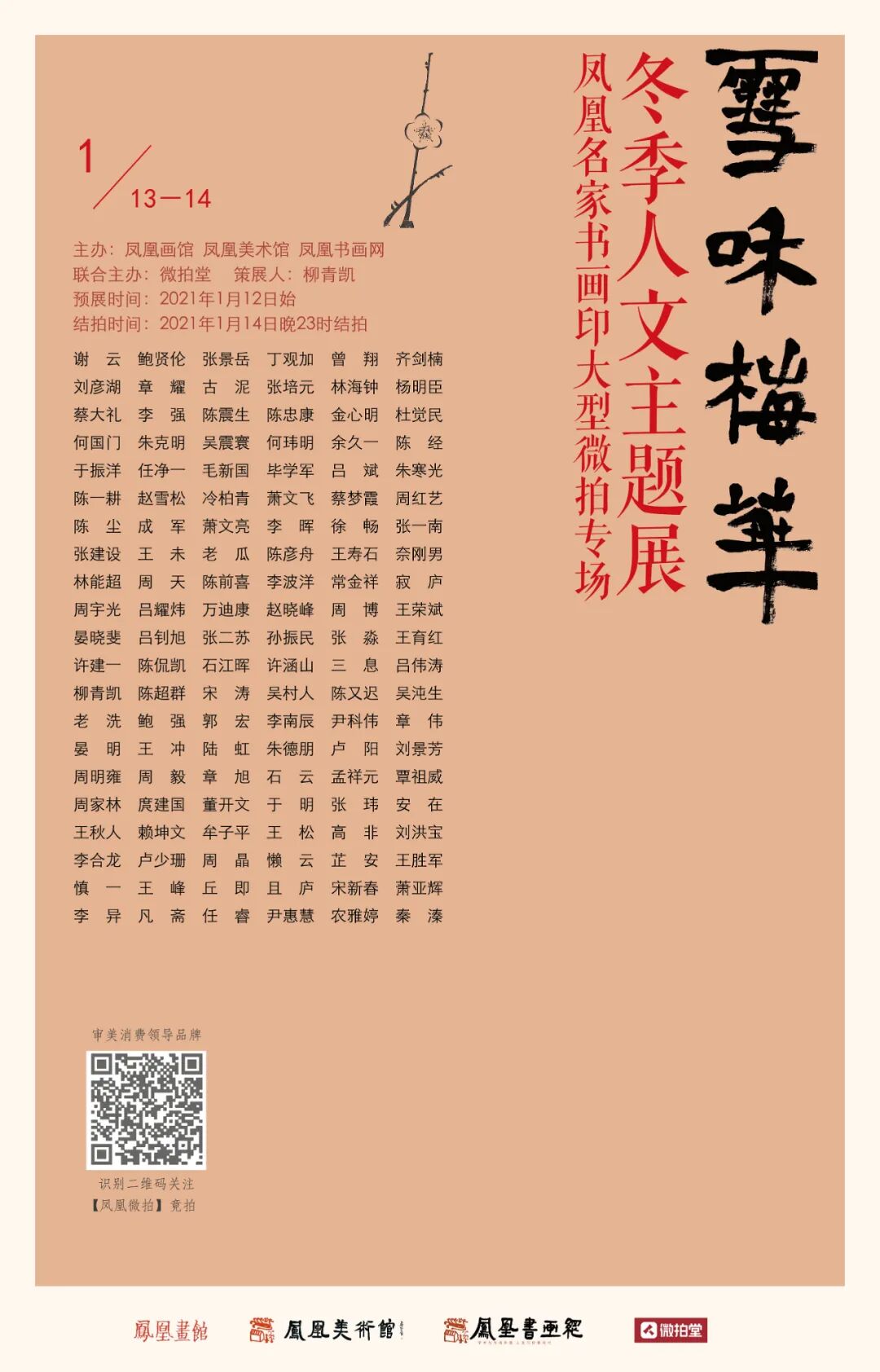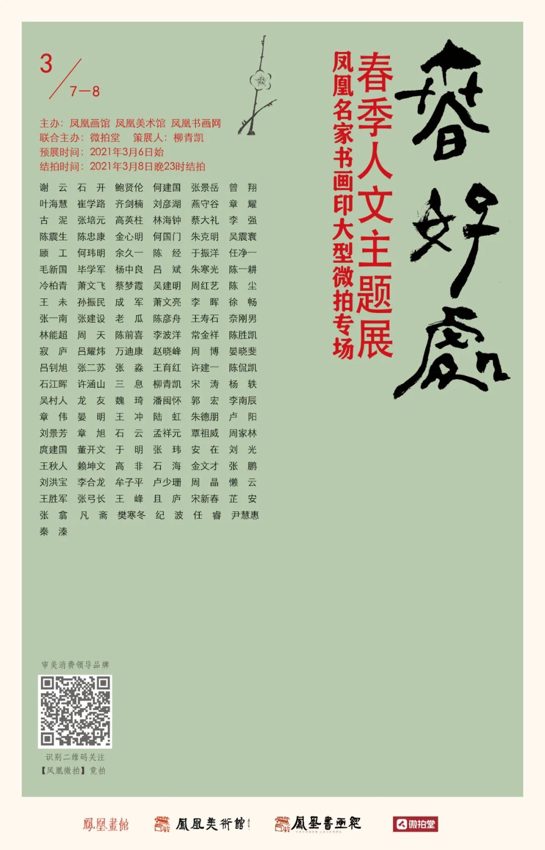 做展+拍模式是为了更好地拓展微拍的格调和模式,以精品和策划提升作品价值和人气流量。旨在提高网络展的传播力、仪式感、互动性,坚持凤凰画馆一贯主旨的“学术与市场并重,人文价值同行”。提高微拍的价格、格调、格局和人气升级,开拓更加纵深的艺术市场的新尝试,新活力、新趋势。展览开始,销售也就开始了。销售结束,展览依然还在。作品的价格取决于买家,让作品自己说话,这是多么真实又直接的互动。