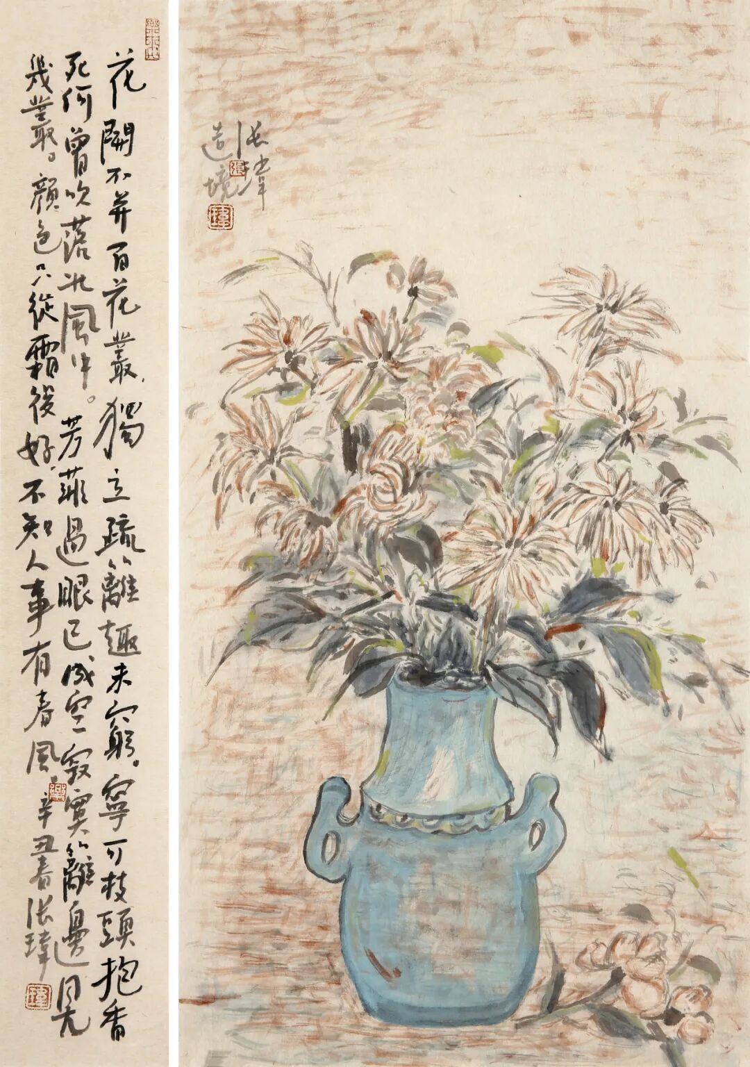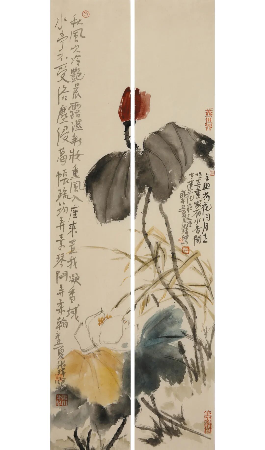 张玮最新花卉通景对屏《秋风吹冷艳》