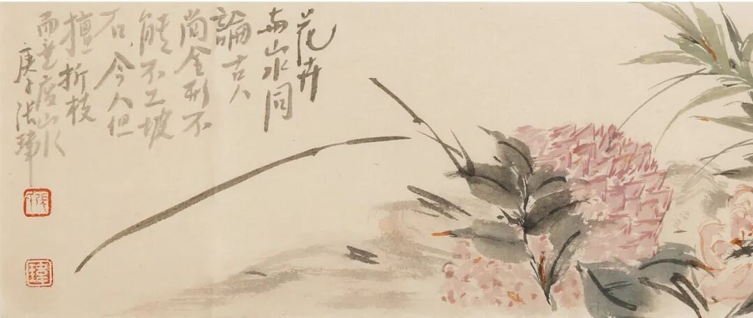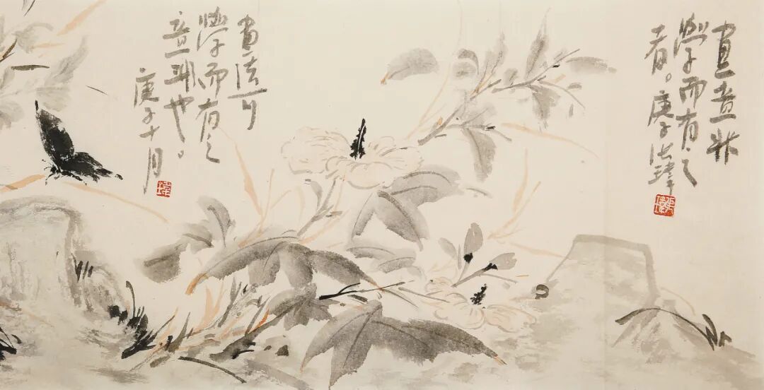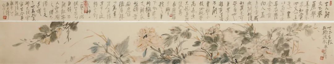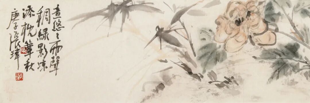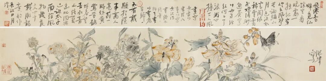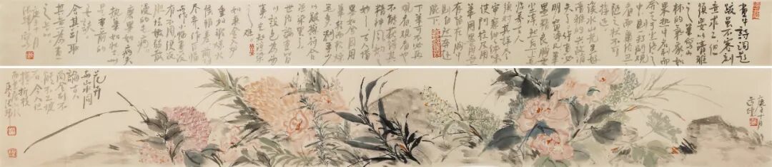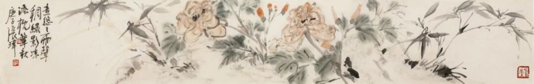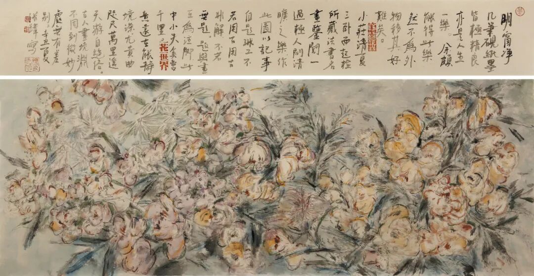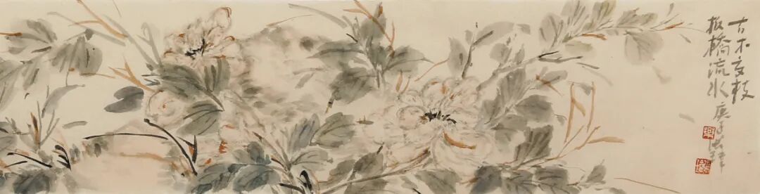 张玮最新花卉横卷《古木交枝 板桥流水》