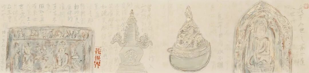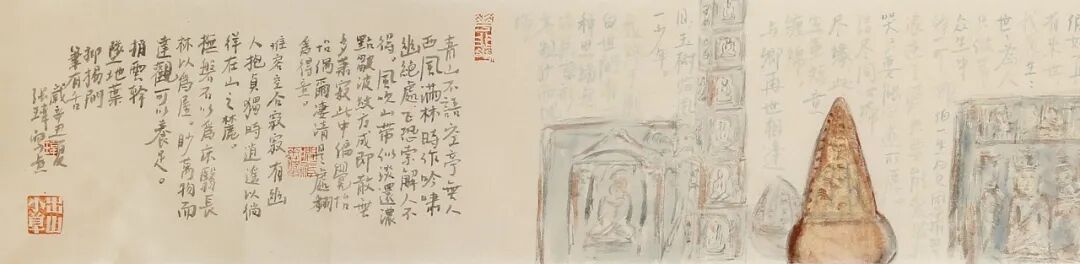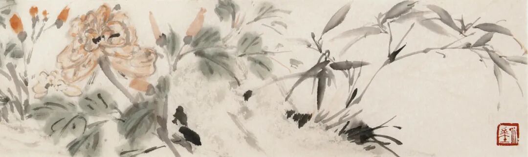 张玮最新水墨手卷《一花一世界》137.5cm×17cm