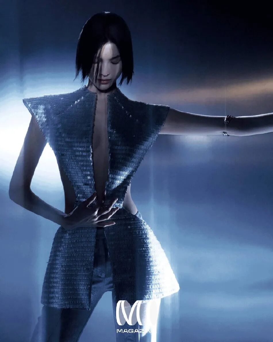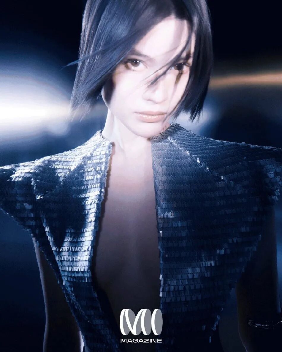 14日,国际超模何穗元宇宙封面大片释出,魅力十足。何穗身着银色亮片服装,五官精致,一头短发,直视镜头,眼神超A,美艳动人。