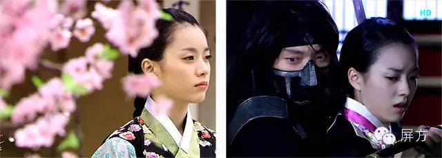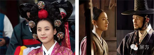 左图:韩孝珠在《双面君王》中梳起了发髻,表现出了王妃的端庄沉稳。