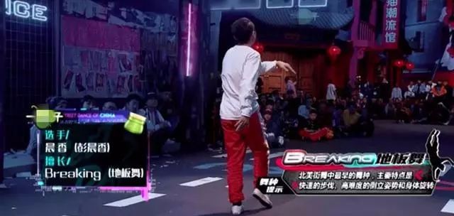 这名选手叫晨香,擅长舞种是Breaking(地板舞),有的网友不是很熟悉地板舞,所谓的地板舞就是北美街舞中最早的舞种,主要特点是快速的步伐,高难度的倒立姿势和身体旋转。