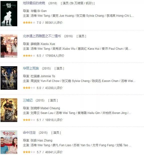 《色·戒》之后,汤唯主演的电影没有一部豆瓣超过7.5分。