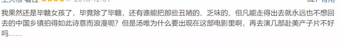 喜欢电影风格的人说:除了毕赣,谁能把丑陋的、乏味的中国乡镇,拍得如此诗意而浪漫呢?但是汤唯为什么要出现在这里啊?