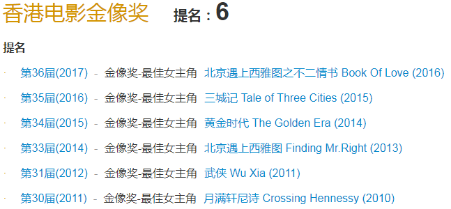 在如今中国的女演员中,这当然不是一份难看的成绩单。