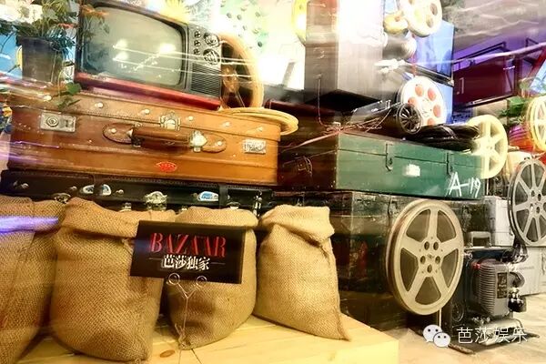 除了这座吸睛率百分之百的放映机以外,门口还有八十年代的老电视,还有一些古董箱子,充满了年代感!