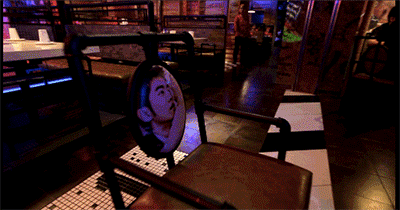 你以为只有墙上有?这还远远不够!芭姐发现椅子的靠背上也有三个人的形象画,这让芭粉们怎么往后靠?根本舍不得好咩!