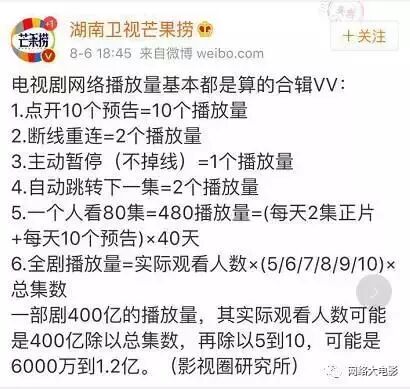 这就说到视频网站对播放量算法的套路了。#就在刚刚,优酷的宣传终于领悟过来,用同样的方法算出了3.5亿的总播放量#