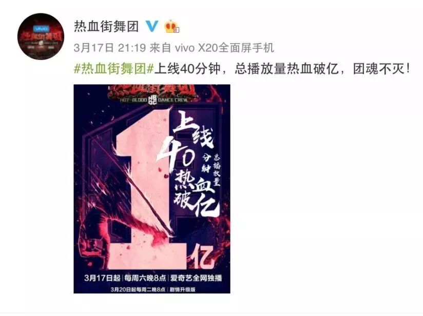 巧了,@热血街舞团“40分钟破亿”的说法,正好符合这个标准。