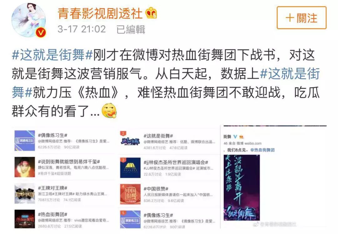 于是优酷在9点左右,开始戏精里的学霸级表演——先是甩数据,说:难怪热血街舞团不敢迎战▼▼▼