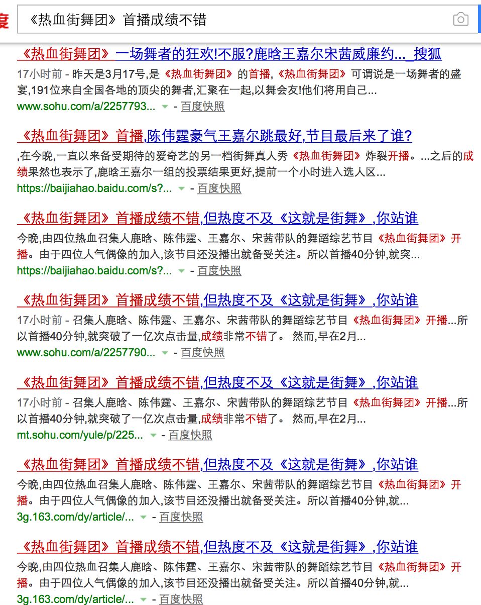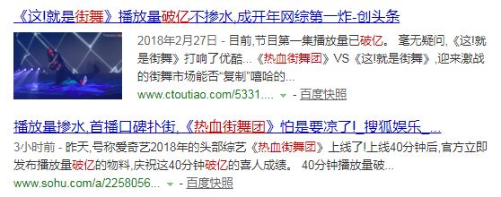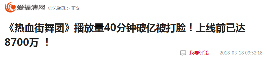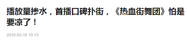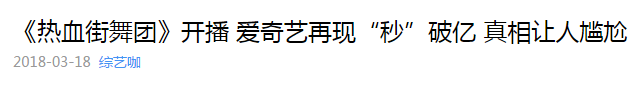 首播隔天天,我们看到了全网铺天盖地的“《热血街舞团》播放量掺水/被打脸”通稿▼▼▼